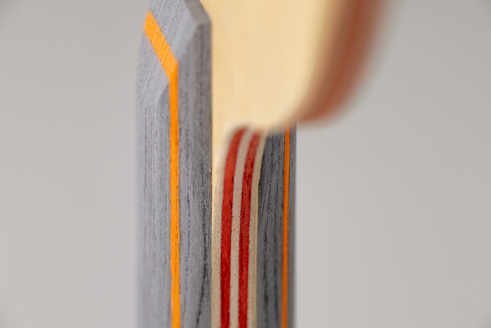 Le placage extérieur en Limba prolonge le temps de contact avec la balle et favorise les topspins à haute rotation avec une grande précision. La construction en bois massif à sept couches assure une dureté modérée, un retour d’information direct et une puissance stable à mi-distance. Le résultat est un bois offensif équilibré avec beaucoup d’effet, un retour clair et une vitesse contrôlable.