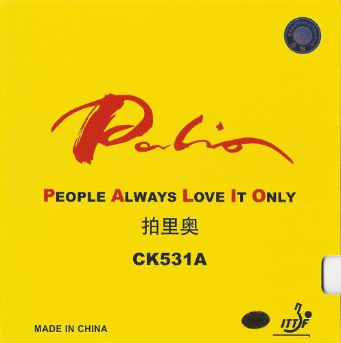 Nouvelle version du CK 531A, à ne pas confondre avec la « nouvelle édition bleue ». Cette version n'est pas couverte ! Dotée d'un nouveau composé de caoutchouc plus souple et plus élastique, la nouvelle version du CK 531A est légèrement plus lente et plus dangereuse que l'ancienne version, avec un contrôle moindre. La forme des bosses du Palio CK 531A est identique à celle du Palio CK 531A. Visuellement, les deux versions sont quasiment invisibles. Le Palio CK 531A est également plus adhérent que l'ancienne version et peut générer davantage de rotation, mais il est lui-même légèrement plus sensible aux rotations entrantes. Par conséquent, le Palio CK 531A est plus adapté aux joueurs qui utilisent également le poignet. Le Palio CK 531A est également plus performant en défense en contre-attaque. De plus, la nouvelle version offre une durabilité accrue, ce qui le rend plus adapté à un style de jeu offensif.