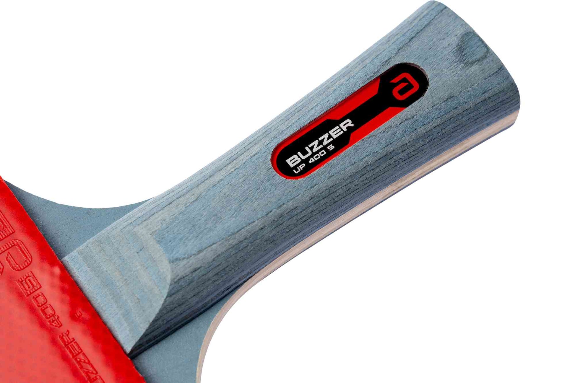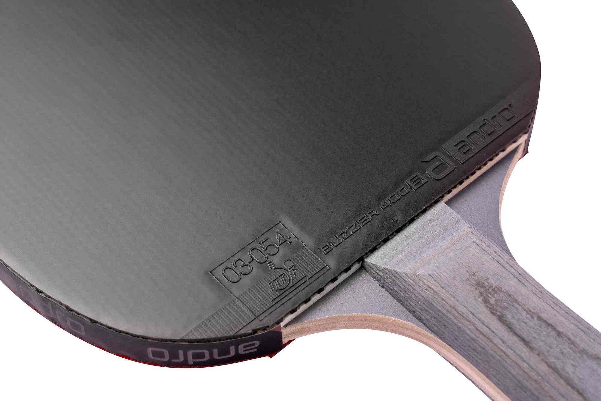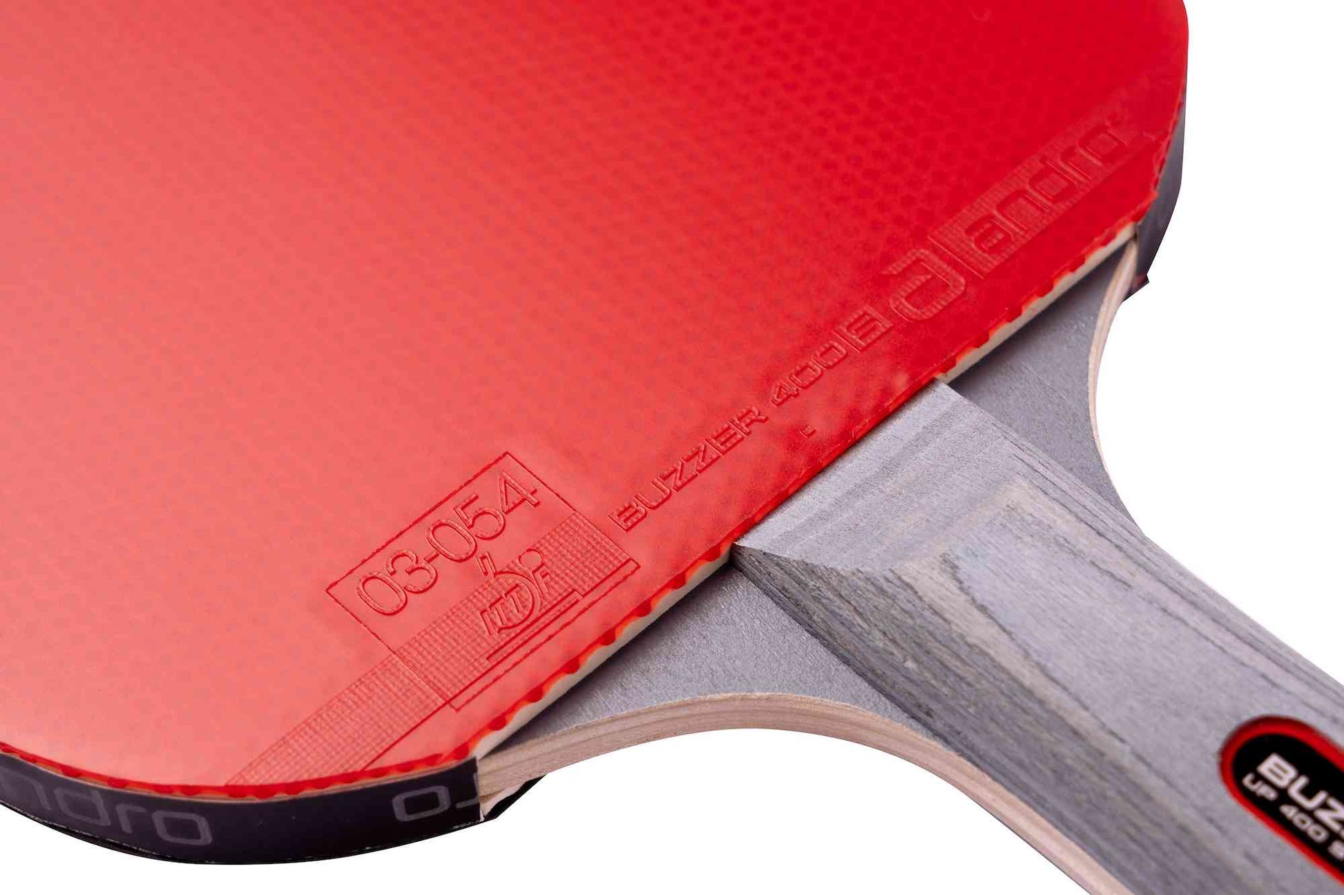 Voor dit bat is voor het eerst een compleet systeem van buzzerwoods en buzzerrubbers in één geheel ontwikkeld en perfect op elkaar afgestemd. All in Allresulteert dit in een zeer efficiënt product. Met andere woorden: techniek met een ongeëvenaarde prijs-kwaliteitverhouding. Binnen de eenvoudig gebouwde Buzzer-serie kunnen beginners en jonge spelers technisch doorgroeien van het instapniveau tot het veeleisende topniveau. Ideaal om met een hoge mate van controle te starten en de basistechnieken te leren. Rubbers: Andro Zoemer 400 S (Backside rubber), rood/zwart, dikte ca. 1,8 mm, ITTF goedgekeurd.