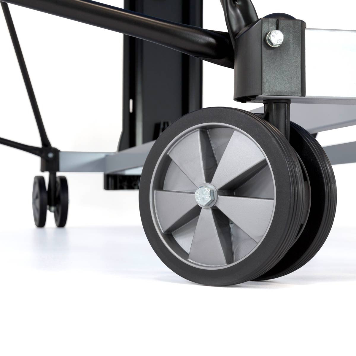 • 4 dubbele wielen (diameter 128 mm) met rubberen loopvlak, All wielen zijn wendbaar