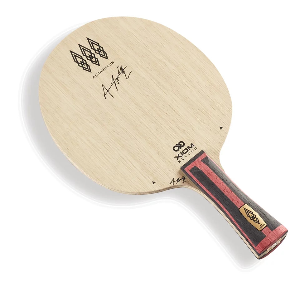Dit is een mes ontworpen door de Xiom R&D-team van blades plaatst het nieuwe composietmateriaal 'TMX (TRIMETRIX)' van de volgende generatie dicht bij het midden van het blade voor de sensuele en krachtige prestaties die An Jaehyun, een lid van Xiom Sterren en de nationale tafeltennisser van Korea.