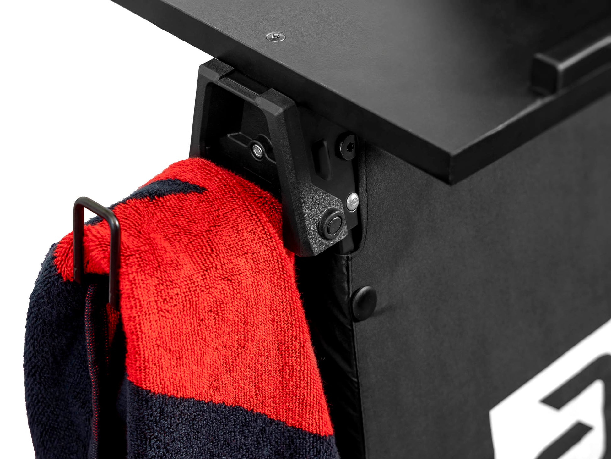Practical and robust referee table with generous shelf for counting boards (30 cm deep). Moreover, with an individual weight of only approx. 6 kg, very convenient. The legs can be unlocked and folded at the touch of a button. Space-saving storage in the cupboard or equipment room is therefore possible. There are fold-out towel hooks on the sides. Dimensions (cm): 67 x 72 x 31
